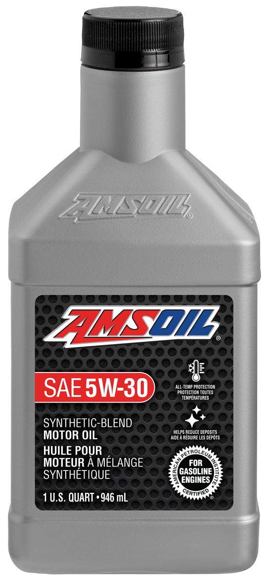 AMSOIL Synthetic-Blend Motor Oil is designed for those seeking an upgrade in protection over conventional oils. It features greater than 50% synthetic content to provide boosted protection for the latest engine technologies, including turbochargers and direct injection. AMSOIL Synthetic-Blend Motor Oil delivers excellent protection against wear and sludge to help keep engines running clean and provide long engine life.