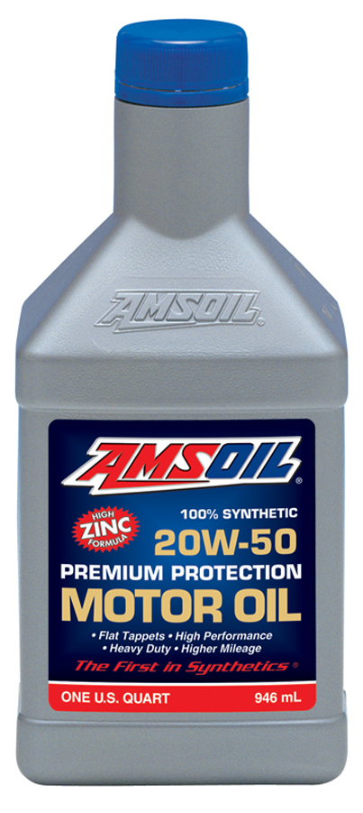 AMSOIL Premium Protection Synthetic Motor Oil is specifically formulated to overcome the thermal deficiencies common to conventional petroleum oils. Volatilization (burn-off), oxidation and excessive deposit formation from high heat are greatly reduced. Viscosity thickening is controlled and engines run cleaner, promoting cooler operation and long engine life in air or liquid-cooled engines. In addition, the higher viscosity nature of AMSOIL 20W-50 Synthetic Motor Oil may help reduce motor oil consumption in equipment that experiences higher-than-normal usage rates when lower-viscosity lubricants are installed.