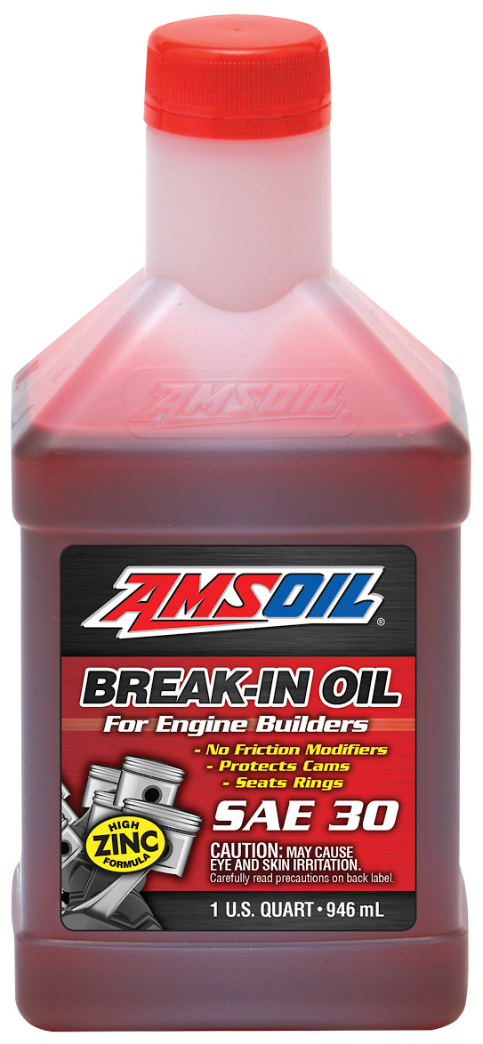 AMSOIL Break-In Oil is an SAE 30 viscosity grade oil formulated without friction modifiers to allow for quick and efficient piston ring seating in new and rebuilt high-performance and racing engines. It contains zinc and phosphorus anti-wear additives to protect cam lobes, lifters and rockers